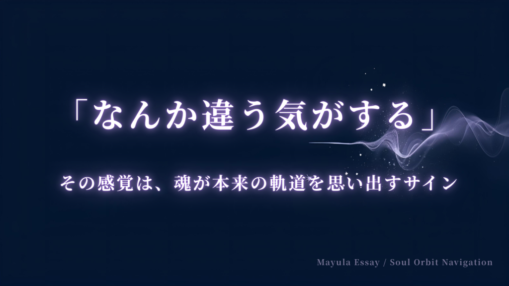 ◇ はじめに — 説明できない“違和感”は、あなたのせいではない 理由ははっきりしないのに、「なんか違う」「これじゃない気がする」とふと感じてしまう瞬間があります。 仕事、人間関係、生活、選んできた道…。特に問題があるわけではないはずなのに、心の... -