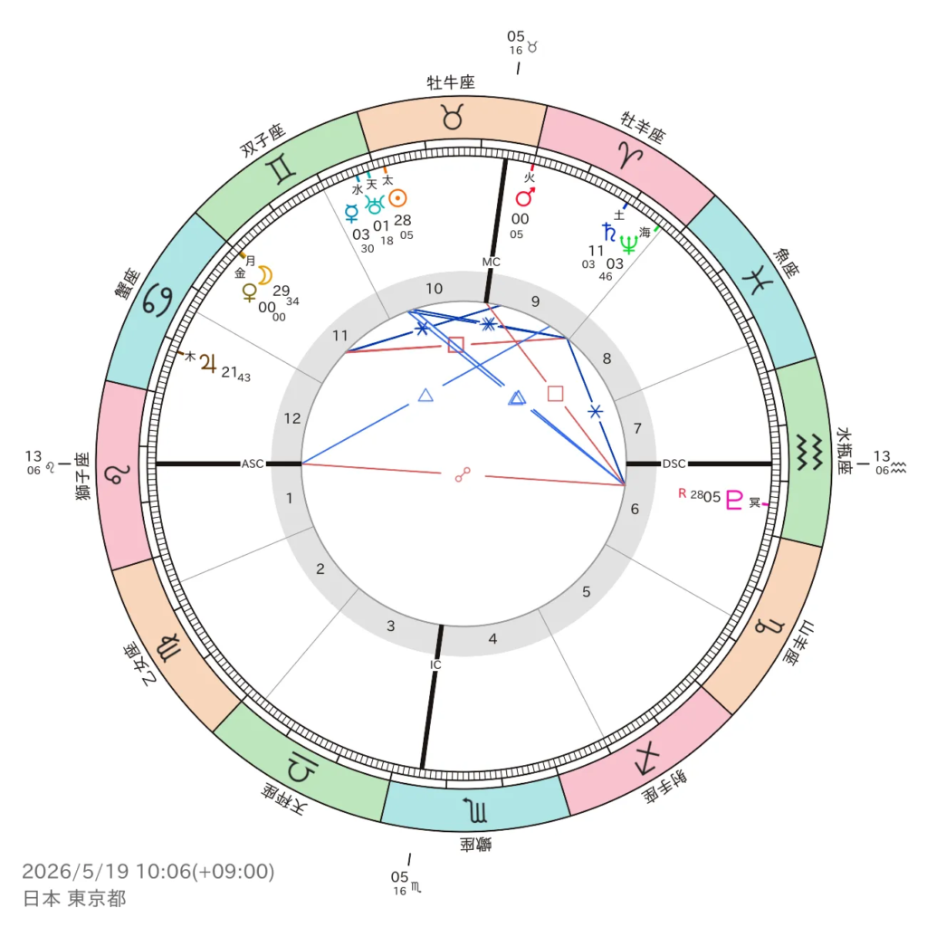 2026年5月19日 7時27分、火星は牡牛座へ入ります。