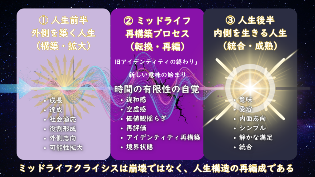 ミッドライフクライシスの本当の役割を心理学・人生構造の視点から体系的に解説します。